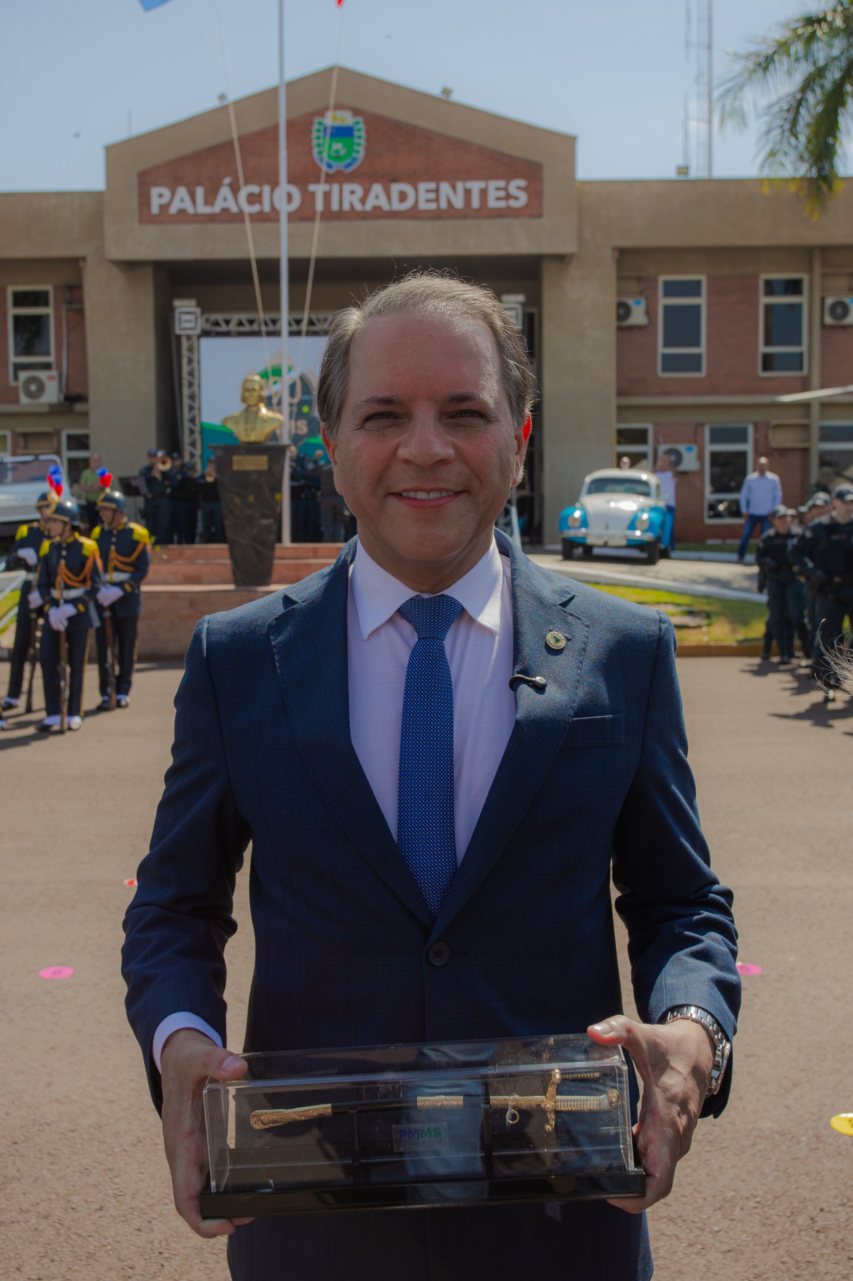 O ato contou com a entrega da Medalha do Mérito e da Insígnia Policial Militar a personalidades que se destacaram pela contribuição ao fortalecimento da corporação. Durante a cerimônia, a tropa formada desfilou em continência ao governador Eduardo Riedel, que ressaltou a importância da PMMS para a segurança e o desenvolvimento do Estado.